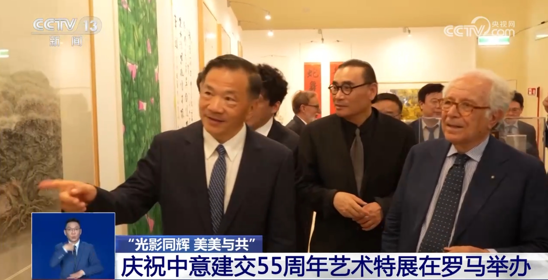 当地时间6月25日,由中国中央广播电视总台联合意大利文化部、意大利人类文明博物馆、意大利罗马美术学院、意大利足球协会、意大利拉齐奥大区议会主办的“光影同辉 美美与共”——庆祝中意建交55周年艺术特展在意大利林琴国家科学院盛大开幕。意大利众议院议长丰塔纳龙信金融,意大利总统新闻顾问兼总统府新闻办公室主任格拉索、外交顾问卡塞斯对活动成功举办表示祝贺。