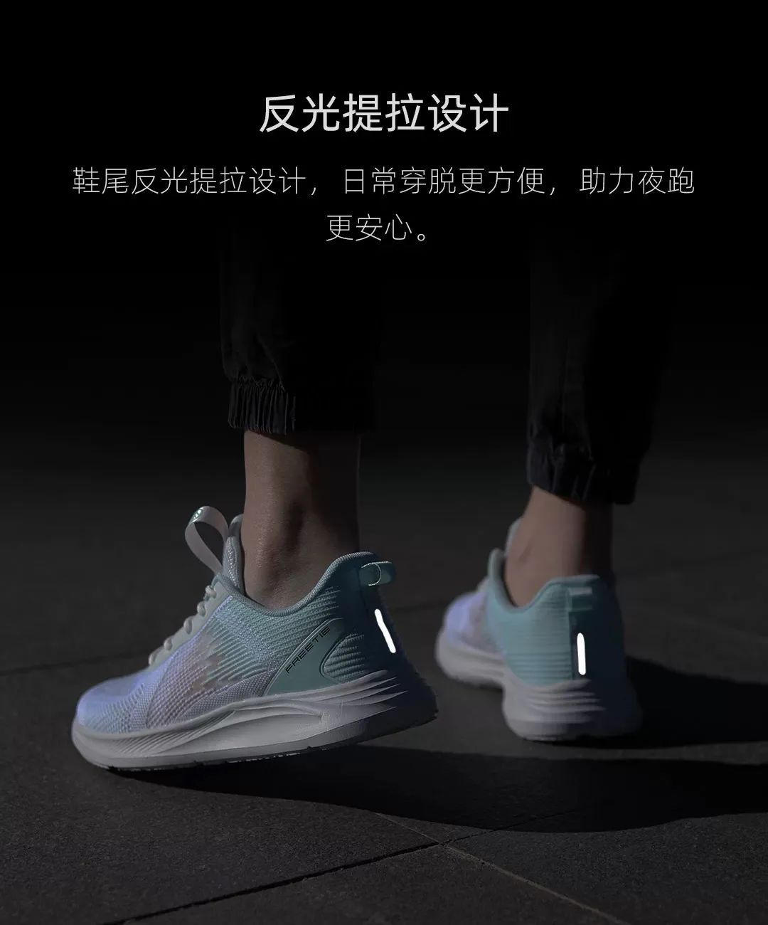 而且鞋尾还设计了反光提拉,对喜欢夜跑的朋友很友好~