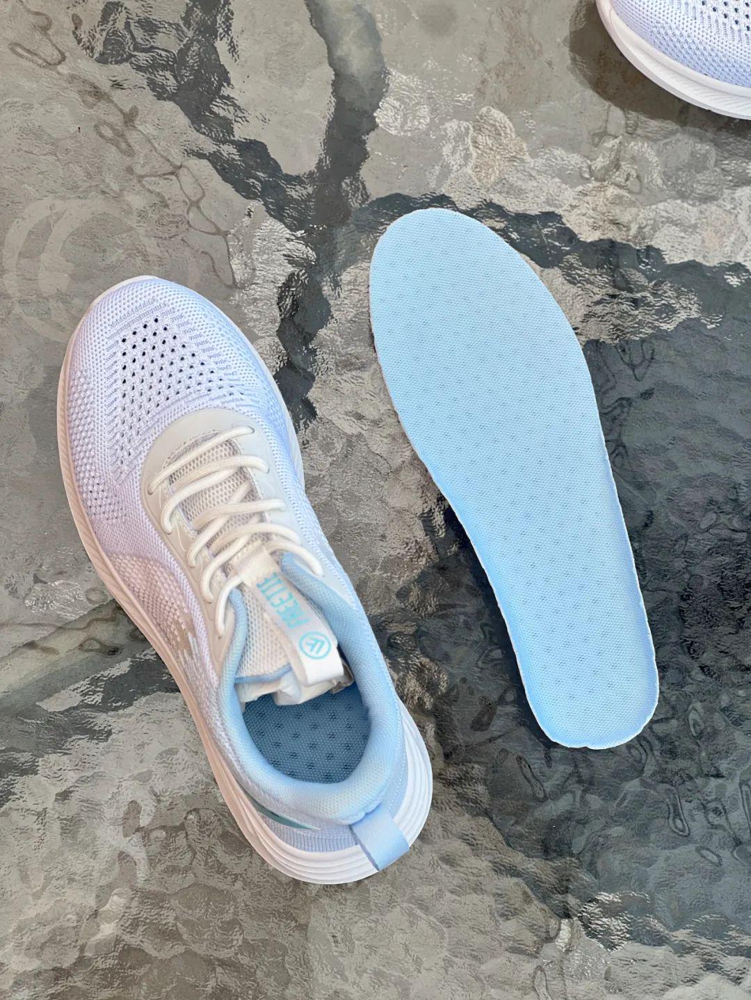 Freetie的运动鞋鞋垫上有很多透气孔,一踩下去,空气就能从脚底穿过去,走一天也不闷。