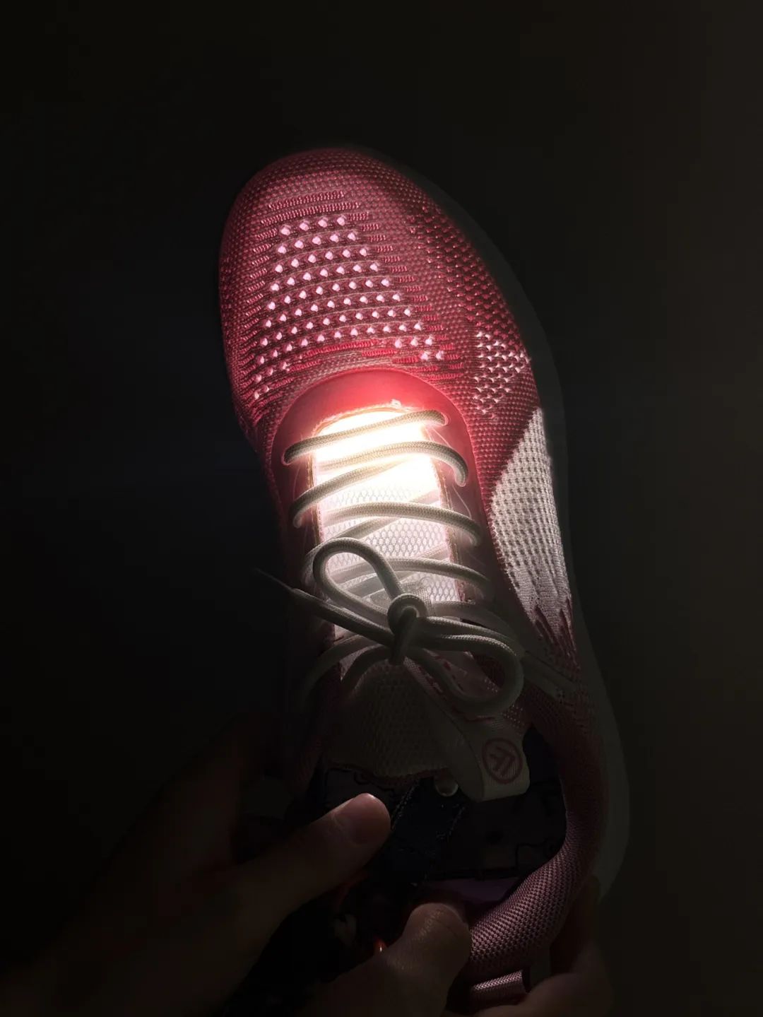 透光性也很惊艳,灯光一照,鞋面像半透明一样轻薄,视觉上都能感受到它的透气感~