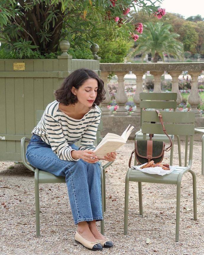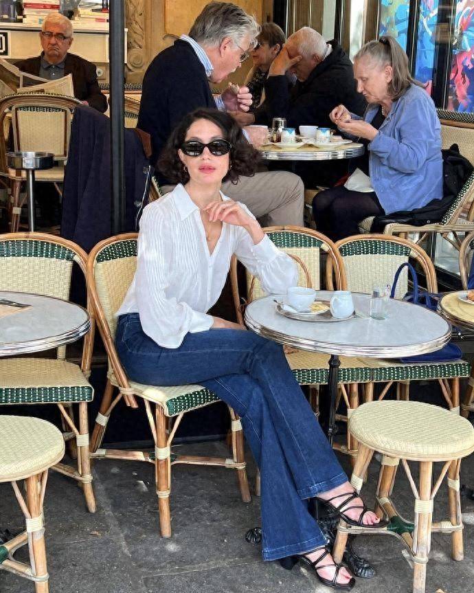 她钟情的条纹衫,时而搭配简约的牛仔裤,演绎出巴黎街头的随性自在;时而外搭一件精致的小西装,瞬间化身为塞纳河畔咖啡馆中优雅的知性女子。那宽窄不一的条纹,在她的巧妙组合下,或修身显瘦,或宽松慵懒,每一次出镜都传递着法式时尚中对经典的尊重与创新。正如法国作家科莱特所说:“优雅不是外在的东西,而是一种自内而外散发的气质,它体现在每一个细节中。”Melodie 对条纹衫的诠释,正是这种优雅的生动注脚,细节之处尽显法式时尚的精致与随意。
