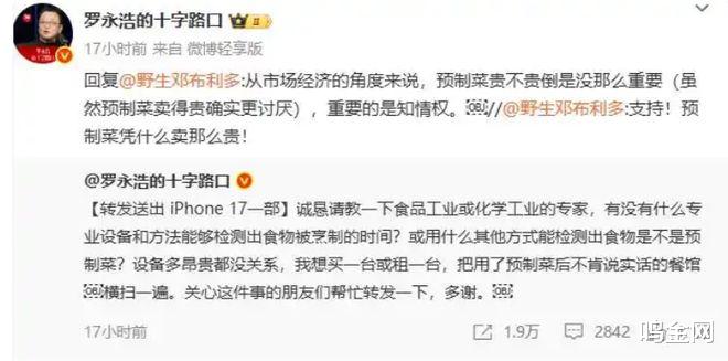 哪怕贾老板明确表态西贝没有预制菜,罗永浩当即回应,如果不是预制菜,肯定加了高科技。总之就是一句话,绝不服软认怂。