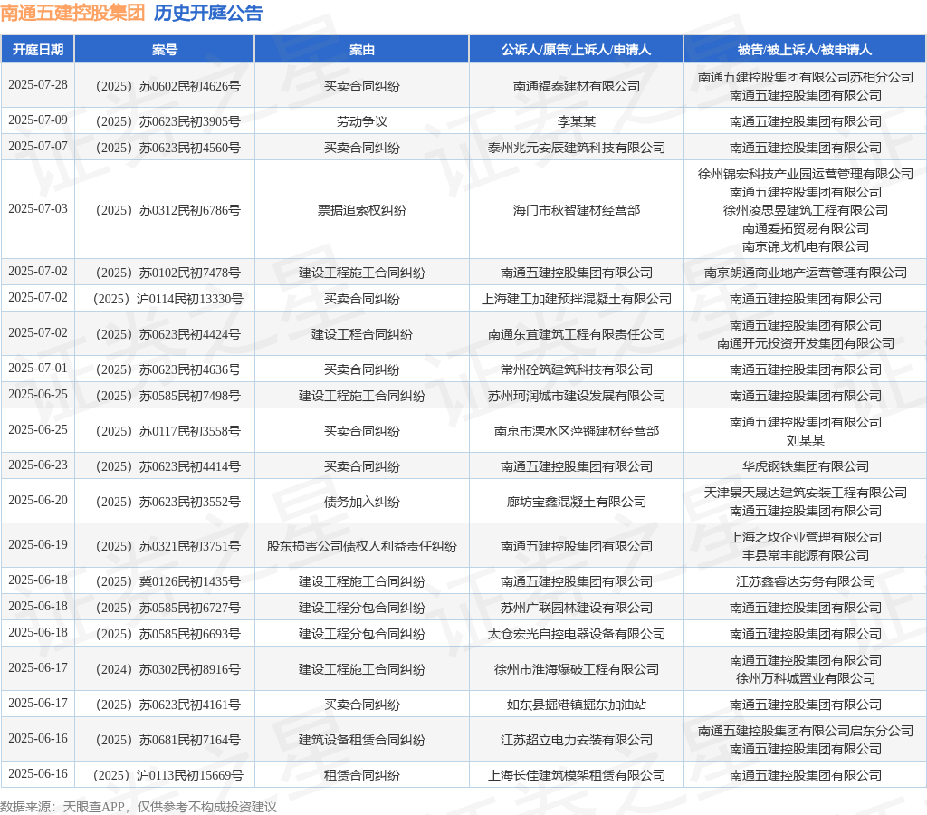 本站消息,根据天眼查APP显示嘉盛投资,近日公布了一则南通五建控股集团有限公司作为被告/被上诉人的开庭公告嘉盛投资,详细内容如下: