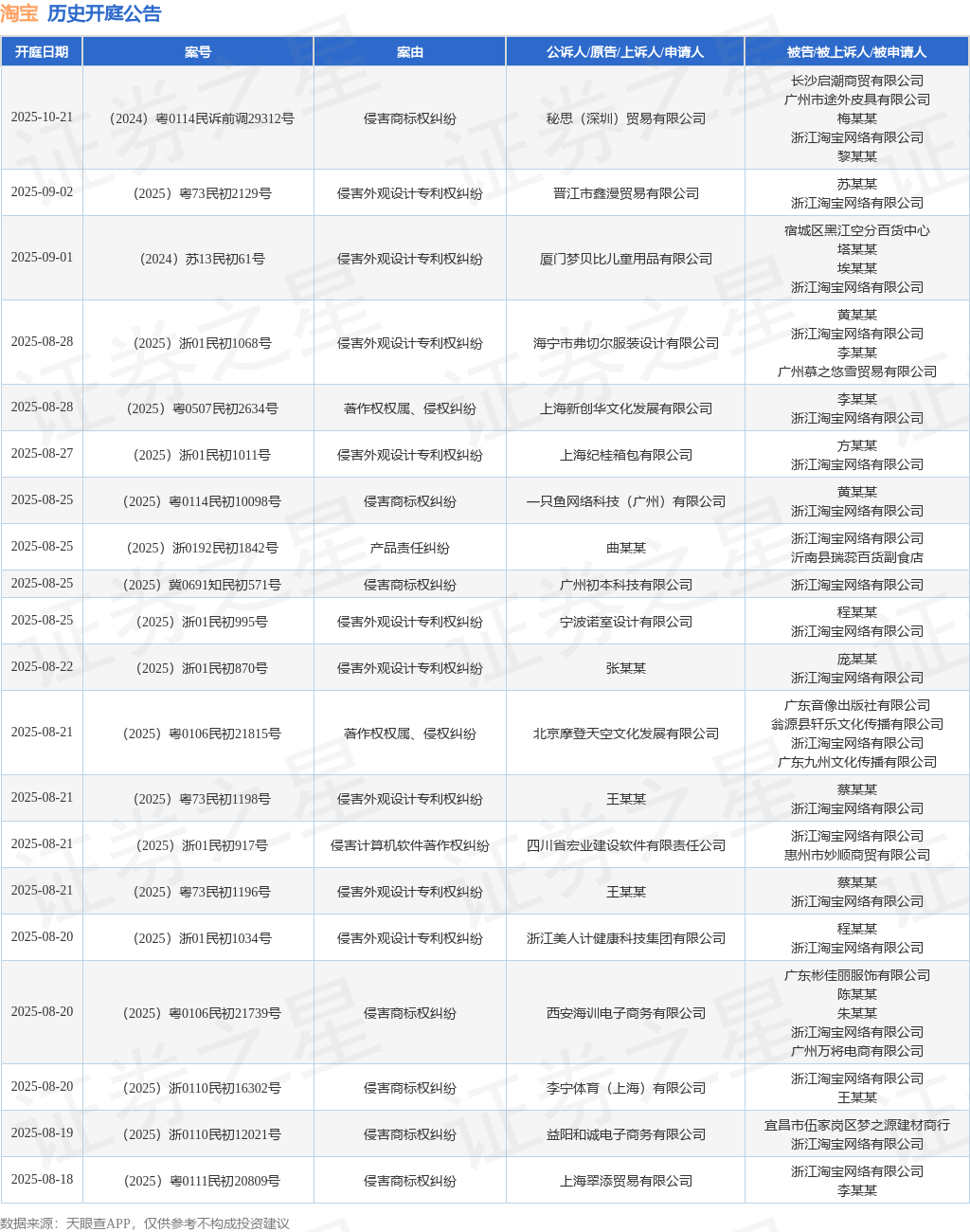 本站消息凯丰资本,根据天眼查APP显示,近日公布了一则浙江淘宝网络有限公司作为被告/被上诉人的开庭公告,详细内容如下: